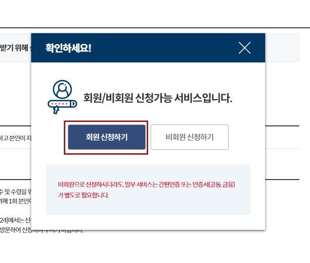 2. 정부24의 회원/비회원 로그인을 진행합니다.